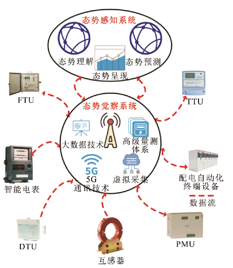圖1 智能配電網(wǎng)態(tài)勢感知物理框架