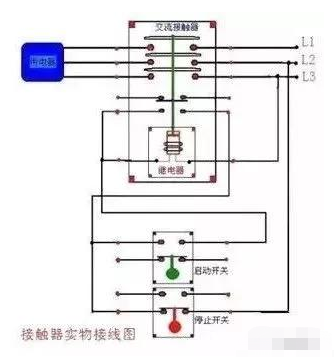 首先三相電源,分別接接觸器的主觸點(diǎn)L1、L2、L3,再?gòu)慕佑|器的T1、T2、T3接出三根線接電機(jī)的三個(gè)接線柱,以上是主電路。