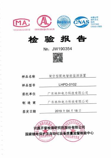 上月,我司“配電智能監測裝置”產品通過許昌開普檢測研究院股份有限公司及國家繼電保護及自動化設備質量監督檢測中心的檢測,該產品不久前剛榮獲國家知識產權局頒發的專利證書。