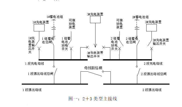 1) 220kV及以上變電站或重要的110kV變電站直流系統常采用兩組蓄電池、三臺充電機的方案簡稱(2+3方式)該充電機一般是相控型充電裝置,也有變電站采用高頻開關電源。